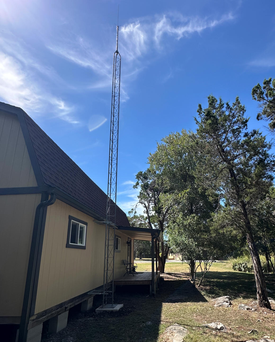 On August 1, 2024, The Wimberley Valley Amateur Radio Club (WVARC) repeater became operational on 145.25 MHz, offset - 600, access tone 162.2. The repeater, AK5Q/R, is located about two miles east of Wimberley Square at a ground elevation of 1140 feet, plus 40 feet of tower and antenna.